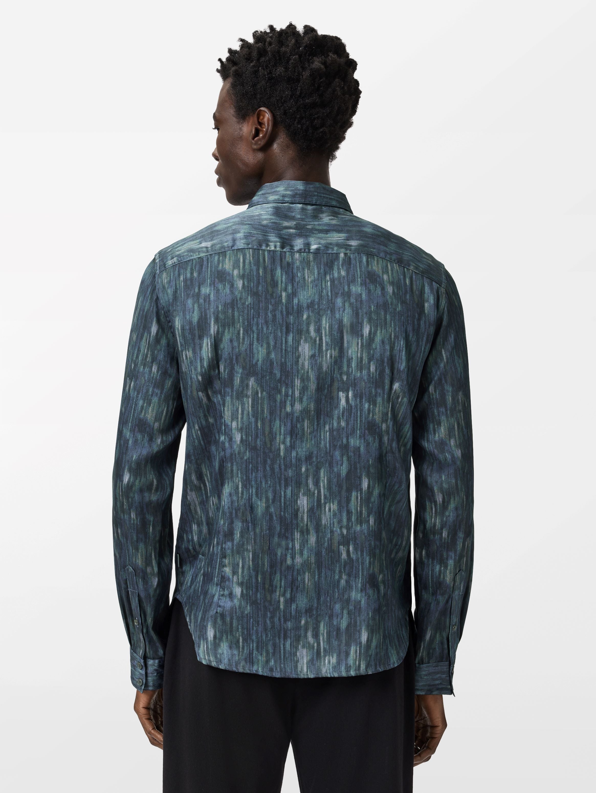 ロス シャツは、やわらかくドレープ感のあるリネン素材を使用。軽やかさと程よい構築感を兼ね備えています。水彩調のベースにダマスク柄を重ねることで、奥行きのある表情を演出。ボタンアップの前立てとスリムフィットが、洗練された印象を加えます。